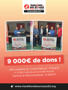 Grâce à la mobilisation des coureurs, bénévoles et partenaires, l’édition 2025 du Marathon des Écluses a permis de remettre 9 000 € à deux causes